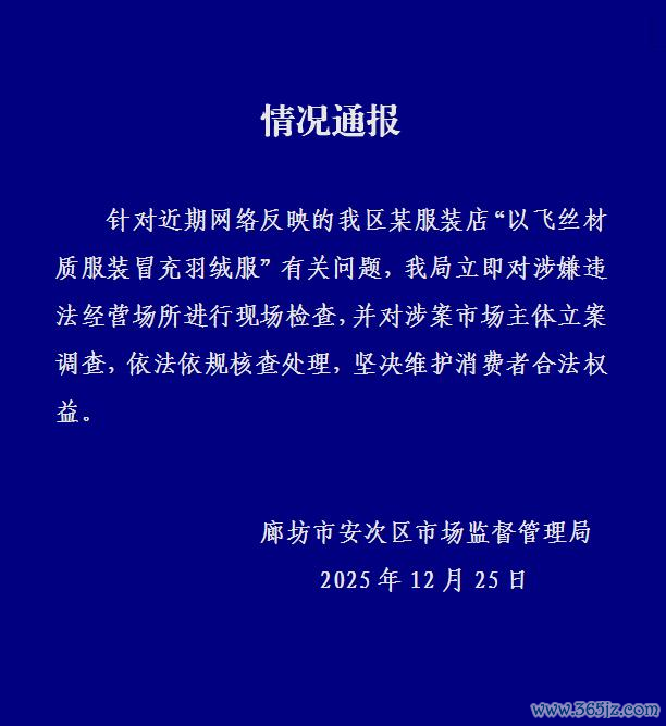 针对近期网络响应的某服装店“以飞丝材质服装冒充羽绒服”关系问题,我局立即对涉嫌犯警狡计形势进行现场搜检,并对涉案市集主体立案走访,照章依规核查处理,坚硬暖热铺张者正当职权。
